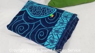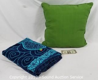 Lot #0195: Beach Towel & Green Outdoor Throw Pillow