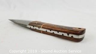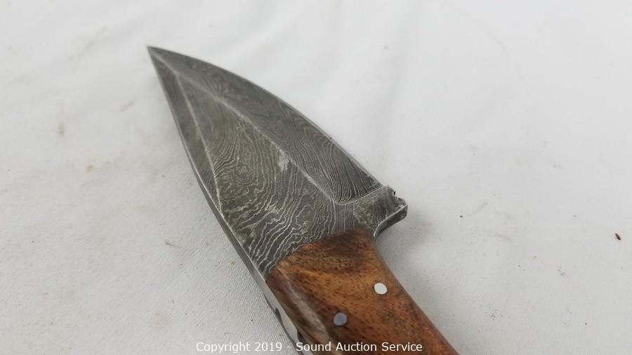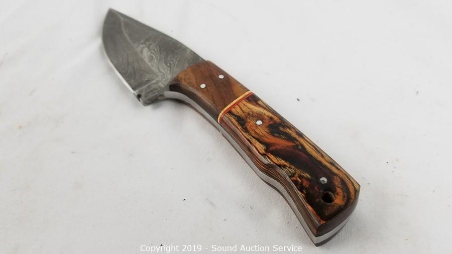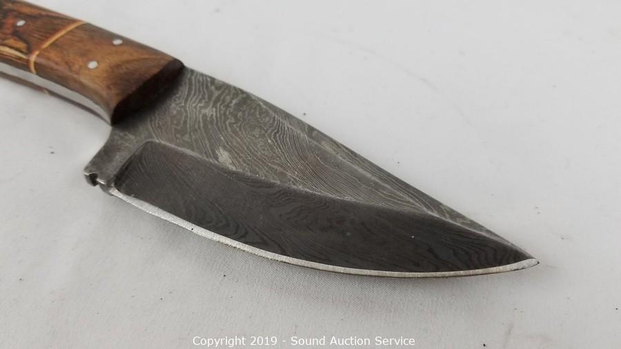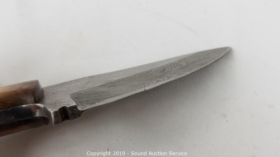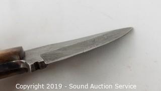 Lot #0221: Beautiful Damascus Steel Stubby Drop Point Knife