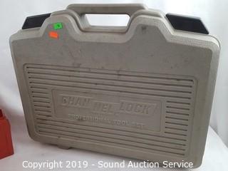 Lot #0090: Channellock Tool Set, Red Tool Box & Miter Clamps