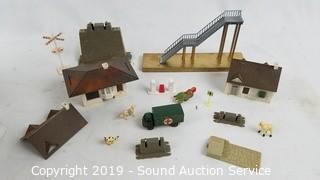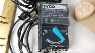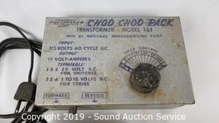 Item Description: Pacemaker Choo Choo pack Model 161 transformer, 2 Tyco transformers, track, signal bridge, railroad crossing and more.