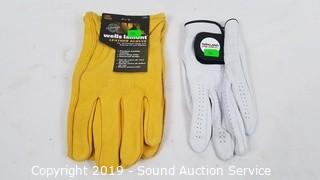 Lot #0268: Leather Golf Glove & Pair of Leather Work Gloves
