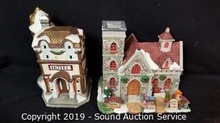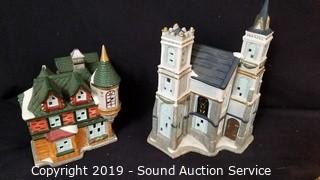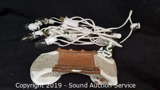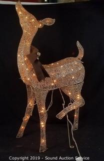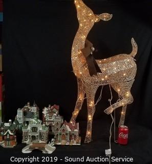 Lot #0408: Lighted Wire Frame Deer & Ceramic Houses