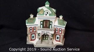 Item Description: 7 Ceramic houses with lights & bridge. Deer lights up, approx. 40" tall.