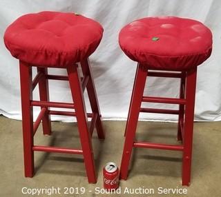 Lot #0006: Pair of Barn Red Painted Stools w/Cushion
