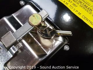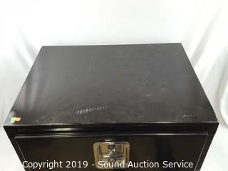 Item Description: 18" x 24" x 19". Has some scratches in the paint. Has key.