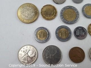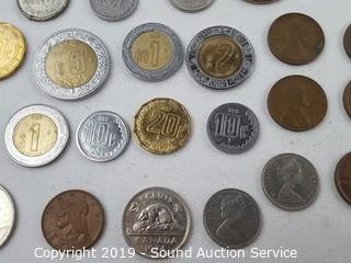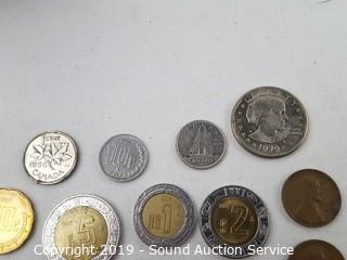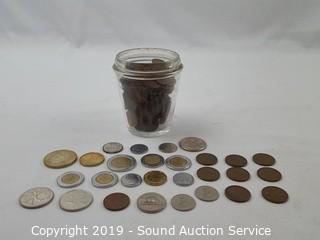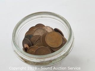 Lot #0355: Vtg. Wheat Back Cents & Foreign Coins