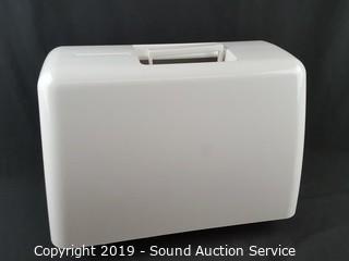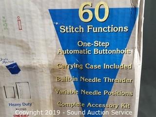 Item Description: 60 stitch functions. Works. Comes with carrying case and original box.