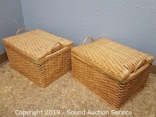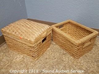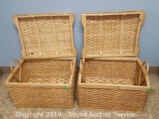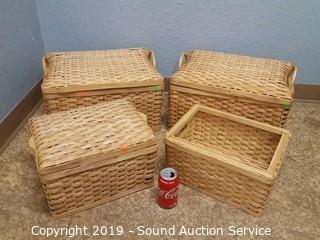 Lot #0264: 4 Wood Woven Baskets w/ Lids