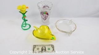 Lot #0291: 4pc Art Glass, Crystal Vase, Dishes & Decor