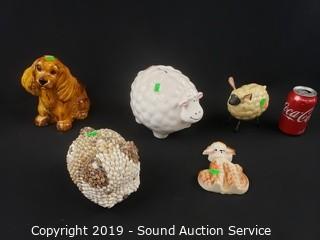 Lot #0290: 5pc Sheep & Dog Figures & Coin Banks