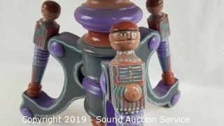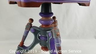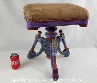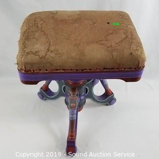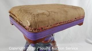 Item Description: Straw filled, fabric is worn, needs reupholstered. Has been hand painted various colors. 18" x 15" x 11".