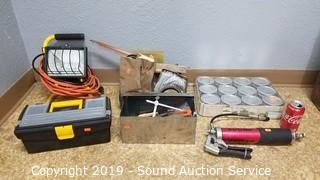 Lot #0350: Canning Jars, Halogen Light, Tools & More