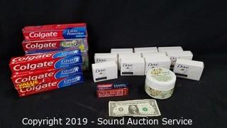 Lot #0355: Dove Bar Soap, Colgate Toothpaste & Odor Absorber