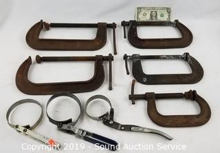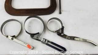 Lot #0288: Large C-Clamps & Oil Filter Wrenches