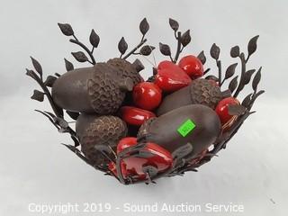 Item Description: Pine cones are ceramic, 8" x 5". Branch decor is metal, bowl is 8" x 13".