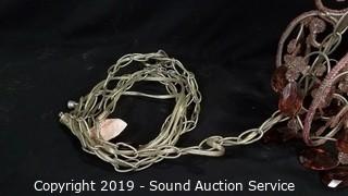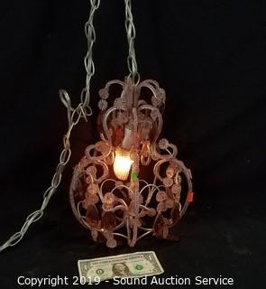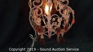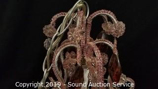 Lot #0312: Pink Beaded Hanging Lamp
