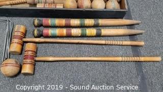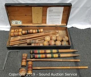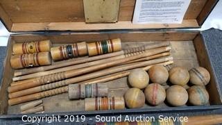 Item Description: Comes in old dovetail construction wooden box with rules of the game manual. Box is 5" x 33" x 13".
