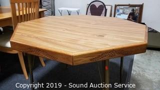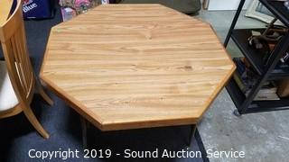 Lot #0092: Vtg. Oak Finish Veneer Top Octagon Table