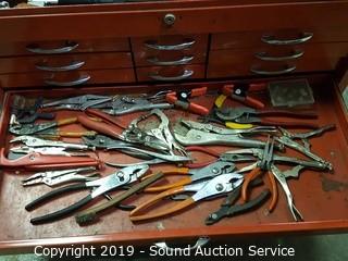 Item Description: Sockets, Stihl Portable Grinder, Scissors, Pressure Gauges, Adjustable Wrenches, Vise Grips, Files, Pry Bars. Very well made professional quality, ball bearing drawer