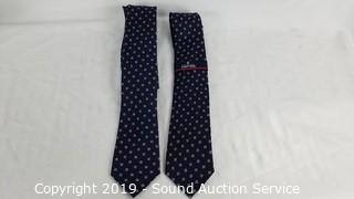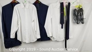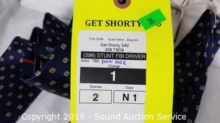 Item Description: Get Shorty season 2, episode 6. (2) Stafford navy/yellow silk ties, (2) Calvin Klein white 16x32/33 dress shirts, (1) black & brown reversible belt Sz. 34, (2) Alfani navy 2pc