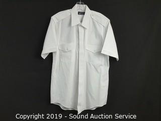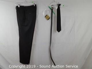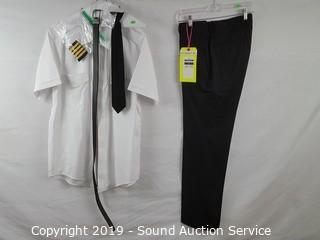 Item Description: Get Shorty season 2, episode 6. Includes: Commander by Van Heusen white uniform shirt sz. 16, Bar III black 32x32 wool dress pants, Rothco black clip on tie, Perry Ellis black