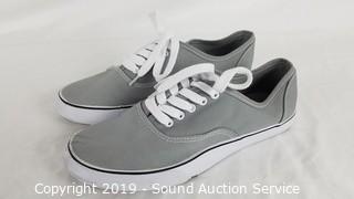 Item Description: Season 2, episode 7. Universal Thread blouse Sz. XS, A New Day heather grey sweater Sz. XS, A New Day grey canvas sneakers Sz. 7, A New Day dark olive jeans Sz. 4, Orilia thing
