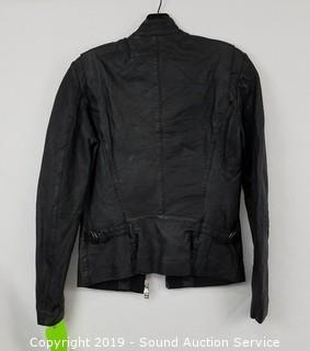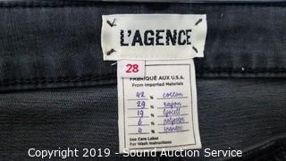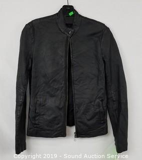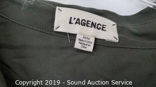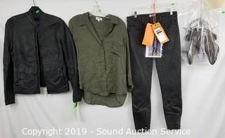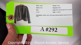 Item Description: Get Shorty season 2, episode 7. ATM black textured leather jacket Sz. XS purchased from Sax Fifth Avenue for $1400, L'Agence dark grey jeans Sz. 28, L'Agence olive silk blouse