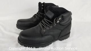 Description Cont. 1: leather work boots Sz. 9.5. Comes with scene information card and actor wardrobe photo. All items come from the set of Get Shorty at the conclusion of filming Season 3.