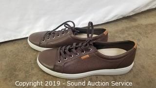 Description Cont. 1: medium, Theory black chino pants sz. 33 purchased for $378, Ecco brown leather tennis shoes sz. 11. All items come from the set of Get Shorty at the conclusion of filming Season 3.