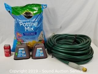 Lot #0283: 100ft Garden Hose, Potting Mix & Faucet Protectors