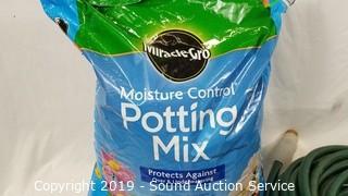 Item Description: 32qt of Miracle Gro potting mix. Garden hose is commercial grade in great condition.