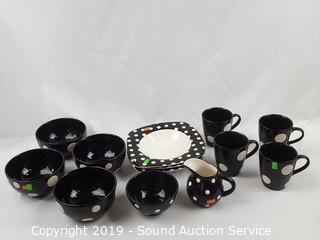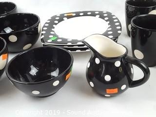 Lot #0321: 13pc. Black Polka Dot Dish Set