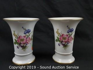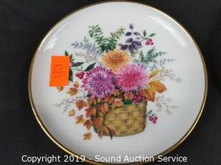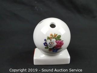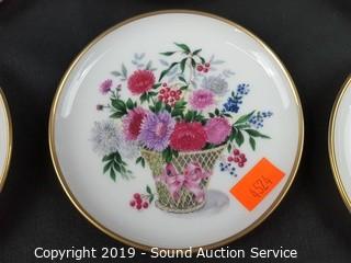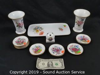 Item Description: Includes 12 coasters, 2 vases, flower frog and 13" x 6.5" tray. Each one is painted with different flower arrangements with gold accents. In excellent condition.