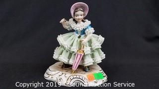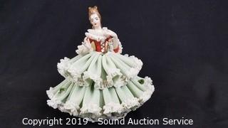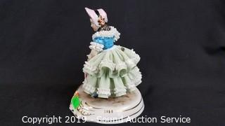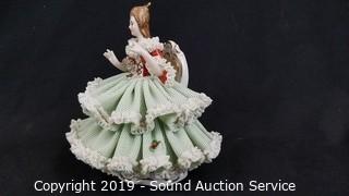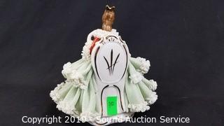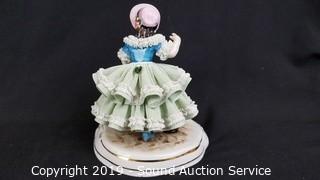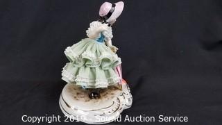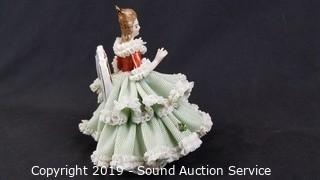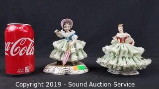 Lot #0050: 2 Vtg Green Dresden Porcelain Victorian Sculptures
