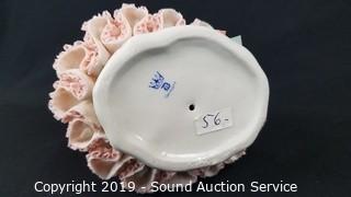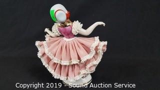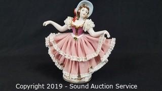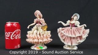 Lot #0035: 2 Vtg Pink Dresden Porcelain Victorian Sculptures