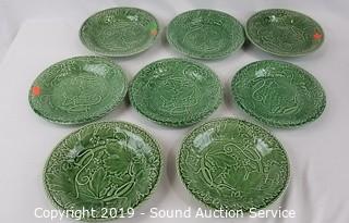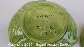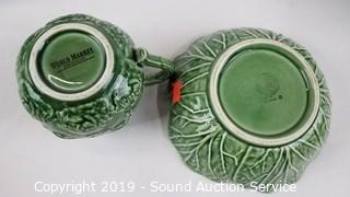 Item Description: 8 Bordallo Pinneiro bowls (One has a crack, one has a chip), creamer, 1973 Poland bowl with lid (signed Judy and Bob 1973), Aries C. Leal Portugal tureen (no ladle), 4 Bordallo