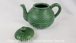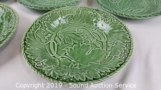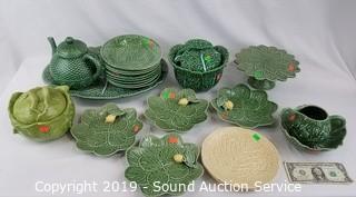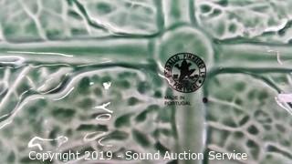 Description Cont. 1: Pinneiro leaf plates, 2 Grinwades Royal Winton plates, Bordallo Pinneiro cake plate, Bordallo Pinneiro teapot, and Bordallo Pinneiro platter.