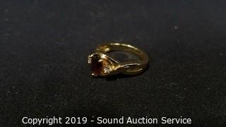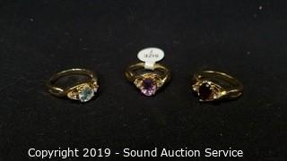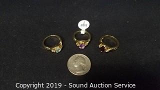Lot #0194: 3 Gold Tone Semi Precious Gemstone Rings S:7