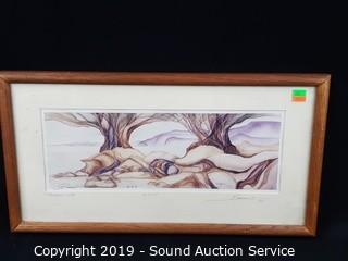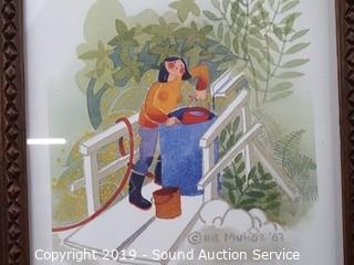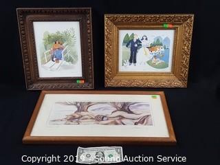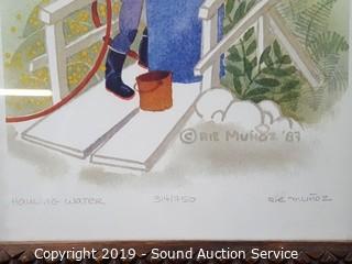 Item Description: All are framed with glass. Includes 1987 Rie Munoz "Hauling Water" #314/750, 11.5" x 13.5" with nice carved frame. 1983 Bergsma "Pleasant Cove" #42/75, 21" x 11". And 1990