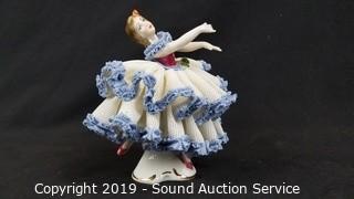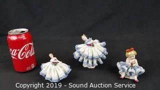 Lot #0048: 3 Vtg Blue Dresden Porcelain Victorian Sculptures