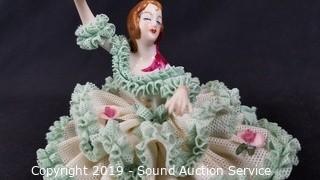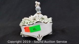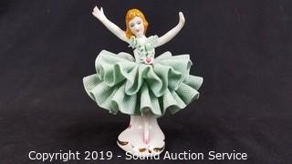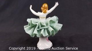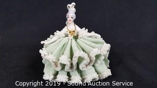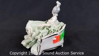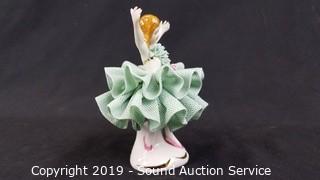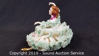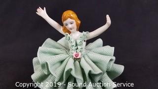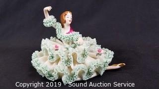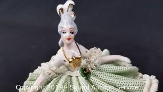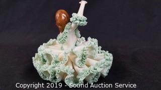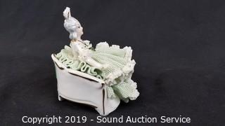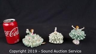 Lot #0049: 3 Vtg Green Dresden Porcelain Victorian Sculptures