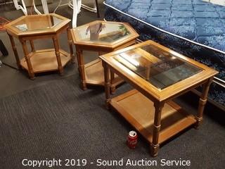 Lot #0231: 3pc Set Beveled Glass Top Side Tables