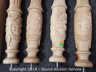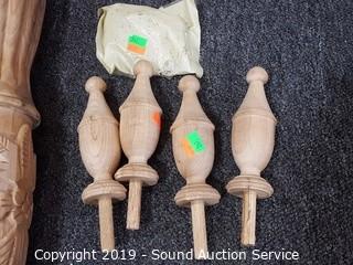 Lot #0247: 4 Solid Raw Carved Oak Fancy Poster Bed Posts
