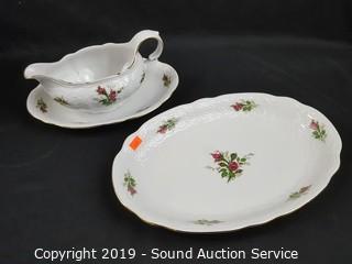 Description Cont. 1: plates, 8 soup bowls, 8 dinner plates, 8" and 9" serving bowls, gravy boat with drip tray, 12" platter and soup tureen.