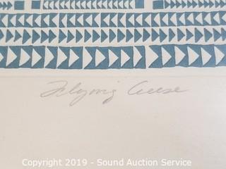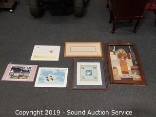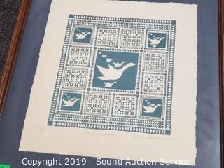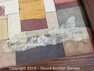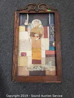 Description Cont. 1: geese artwork 17" x 18", and Ahar angel artwork made from construction paper and other materials with carved wood frame 29.5" x 17".