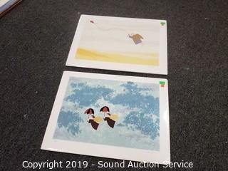 Item Description: 2 angel artist proof lithographs 11.5" x 15", 1999 Janet L. Munro print 11" x 8.5", Brooke Morrison #45/200 embossed spring print 11" x 21.5", Mary Rutherfurd #370/965 embossed