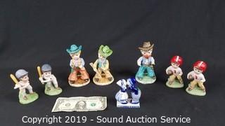 Item Description: All are hand painted, football, baseball & cowboy figures. 3.5 - 5.5" tall. Don't see any markings on the athletes or cowboys.