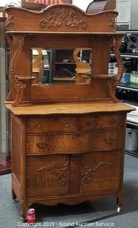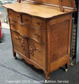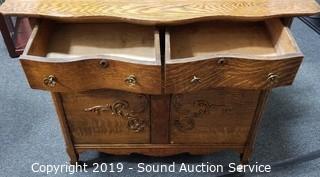 Lot #0010a: Antique Quarter Sawn Oak Open Hutch Buffet