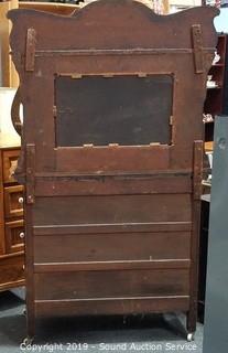 Item Description: Skeleton key locks, NO key, porcelain casters, beveled glass mirror, dovetail construction. 72" H x 43" W x 20" D. In good condition.