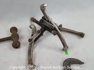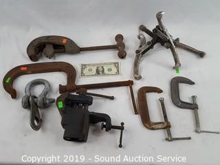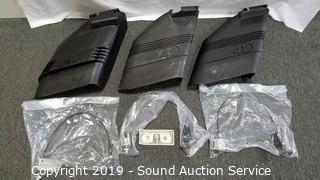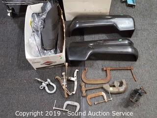 Item Description: Seat Clamps, Polar, Vise & U-Bolt, NEW Lawnmower Deflector Shields & Choke Cables and 2 Metal Fenders.